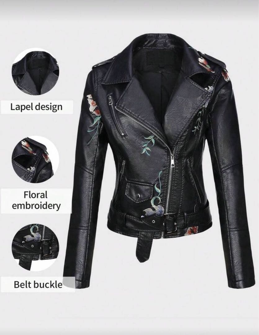 【新品未使用】黒のフローラル花刺繍レザージャケット革ジャン