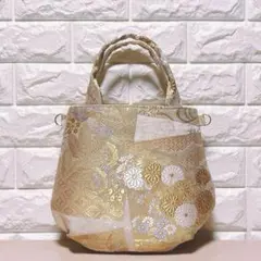 帯リメイク 祝い柄刺繍 ダーツマチ 2WAY 丸みトートバック