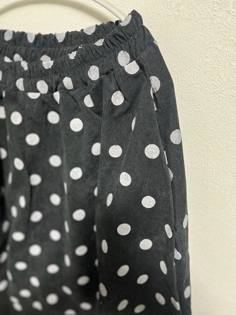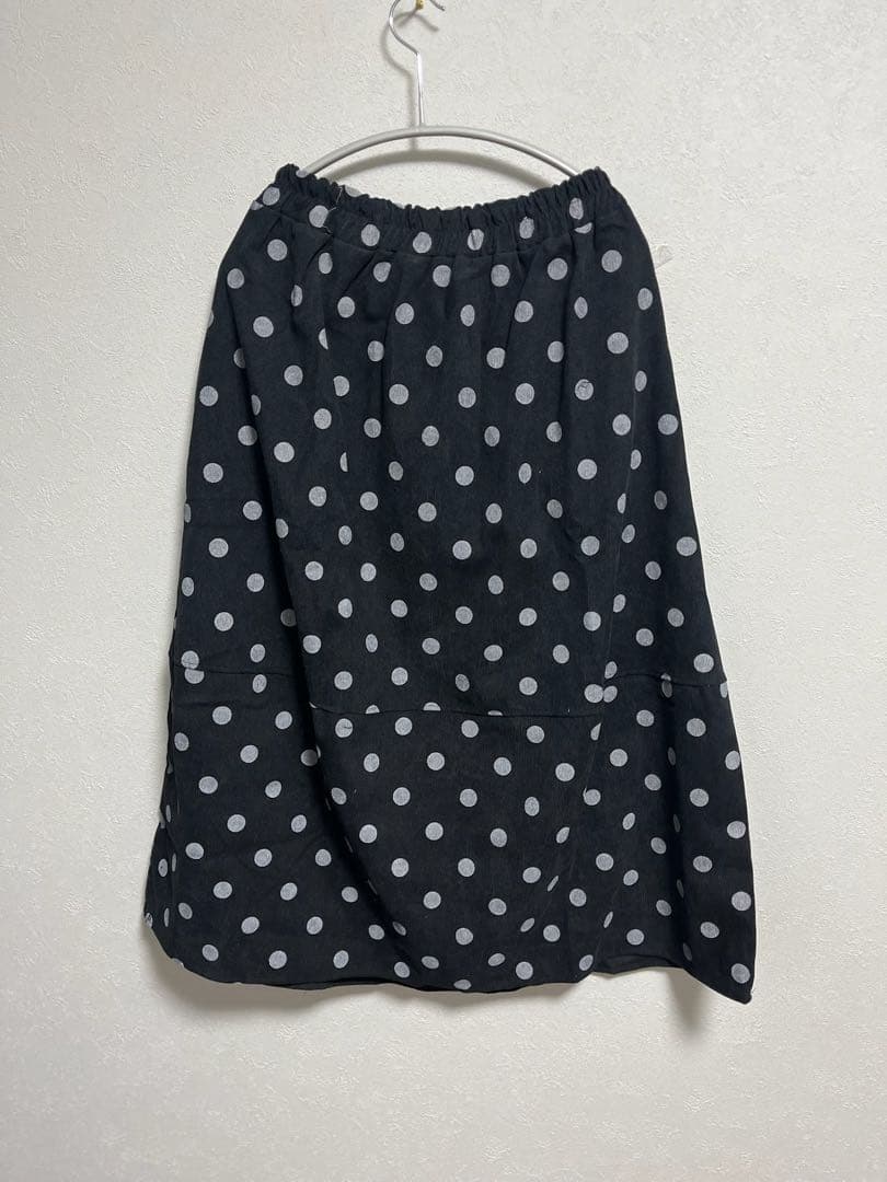 セール中!L ドット スカート ブラック 個性的 レトロ 黒 着痩せ ゆったり