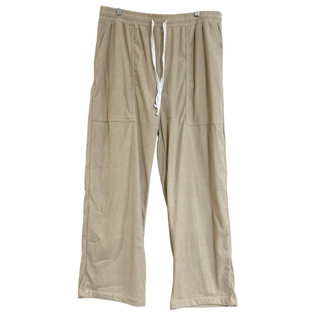 タグ無し新品/コーデュロイワイドパンツ/ゴムウエスト/紐付き/ベージュ/XL