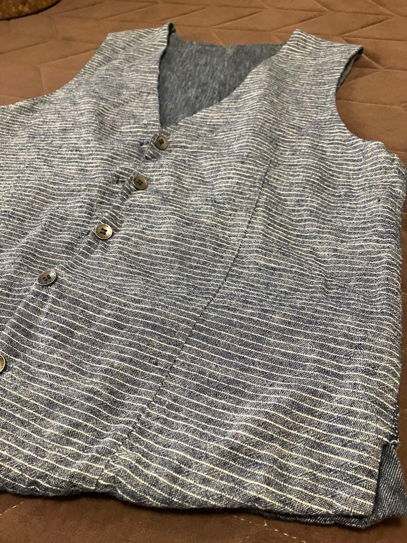 メンズベスト ジレ ダークブルー/グレー リバーシブル XL