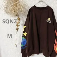 b228【SQNZ】派手プリント ブラウン 裏起毛 トレーナー 地球炎ウィメンズ