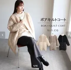 アフタヌーンティーオリジナル裏地ギンガムチェック柄キルティングコート/USED