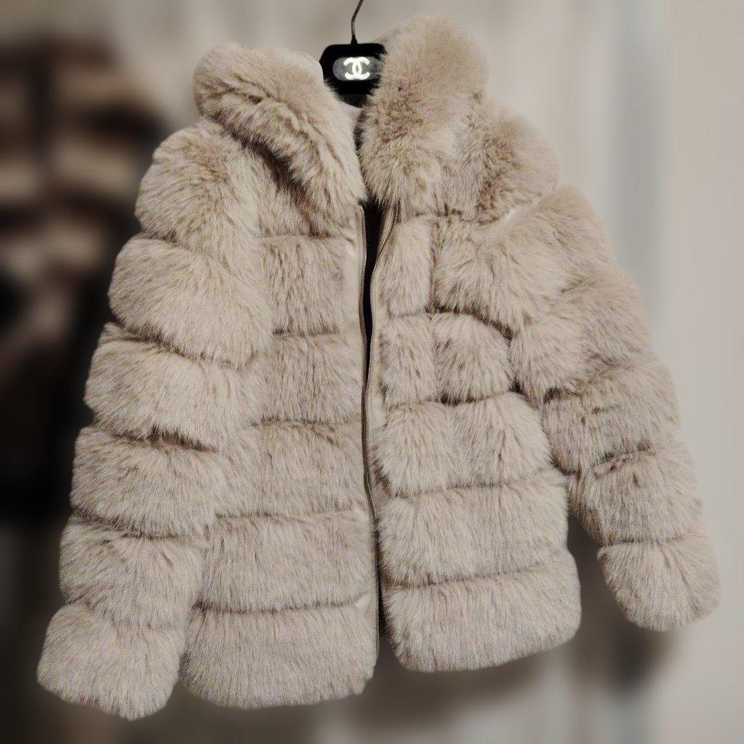 最終価格!SHEINファージャケットコートフーディ XS ベージュ
