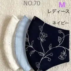 布マスク 3枚セット 綿レース・刺繍地 サイズM・レディース 70
