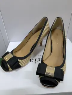 Strawberry fields オープントゥパンプス ベージュ×黒