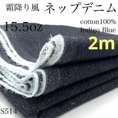 ◇S514 霜降り風 ネップデニム 2m インディゴブルー 15.5オンス 生地