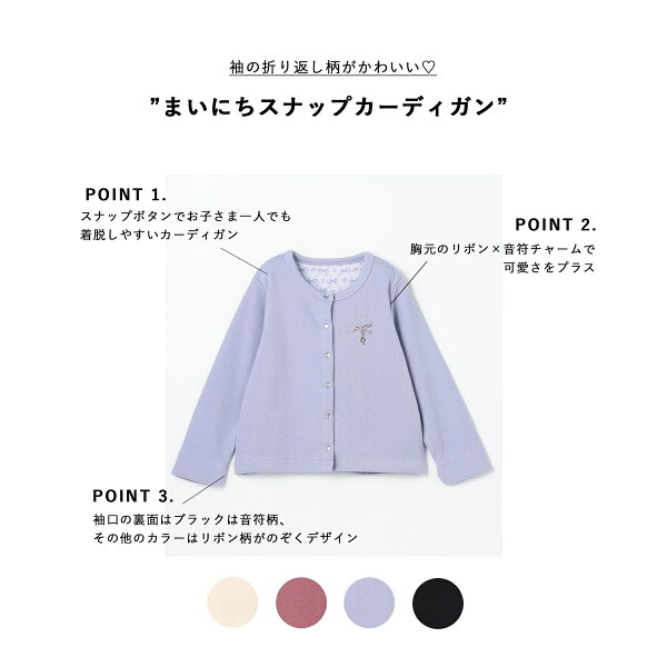 スナップボタンでお子さま一人でも着脱しやすいカーディガン。