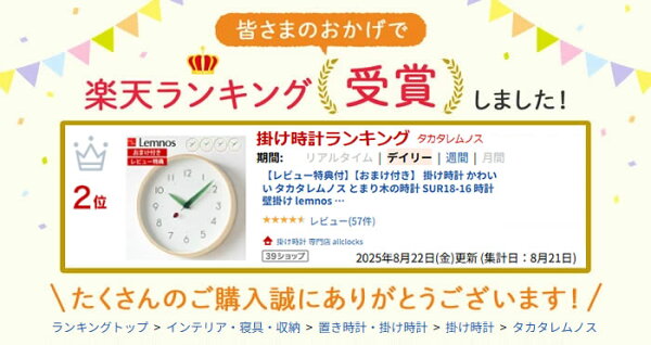 【レビュー特典付】【おまけ付き】 【楽天ランキング3位受賞♪】掛け時計 かわいい タカタレムノス とまり木の時計 SUR18-16 時計 壁掛け lemnos レムノス かわいい おしゃれ ナチュラル 北欧 木製 蝶 ちょうちょ てんとう虫 子ども 子供部屋 新築祝い 引っ越し祝い