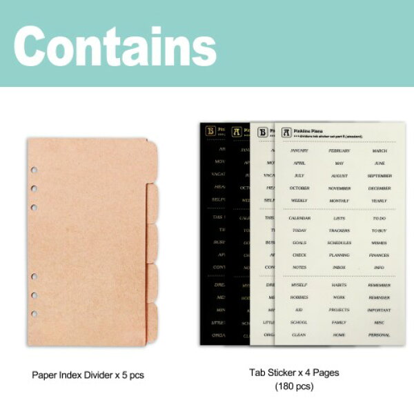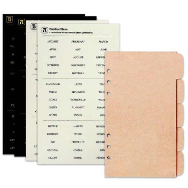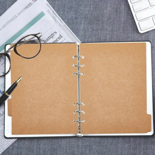 Zelten PPバインダーインデックス仕切り板、4枚のタブステッカー付き、パーソナルオーガナイザー・プランナー・ルーズリーフノート用 (Paper Kraft 5-Tab,A6/6 Hole)