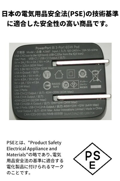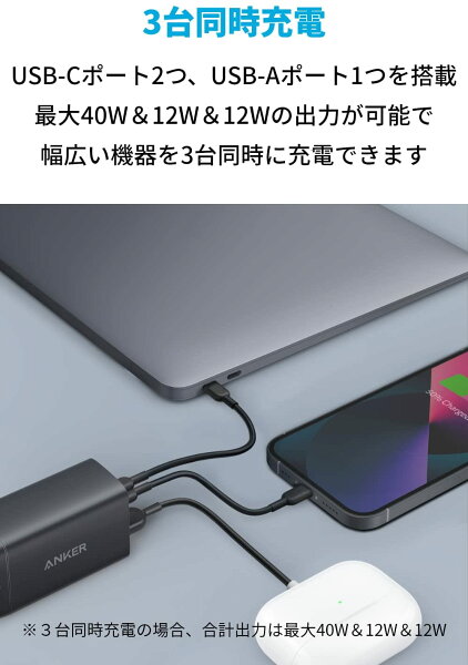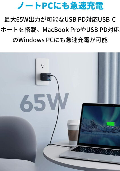 Anker PowerPort III 3-Port 65W Pod (USB PD 充電器 USB-A & USB-C 3ポート)【独自技術Anker GaN II採用 / PD対応 / PPS規格対応】
