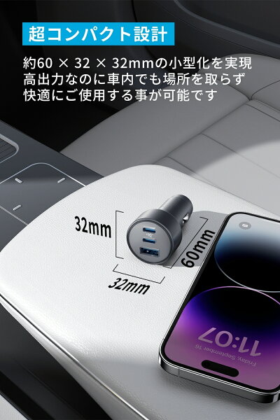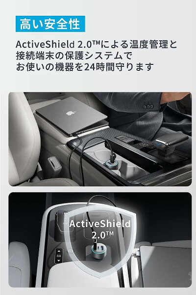 Anker 535 Car Charger (67W) with USB-C & USB-C ケーブル (PD対応 67W 3ポート USB-C カーチャージャー) 【Power Delivery対応 / PowerIQ 3.0搭載 / コンパクトサイズ】MacBook Pro iPhone 15 Galaxy Android