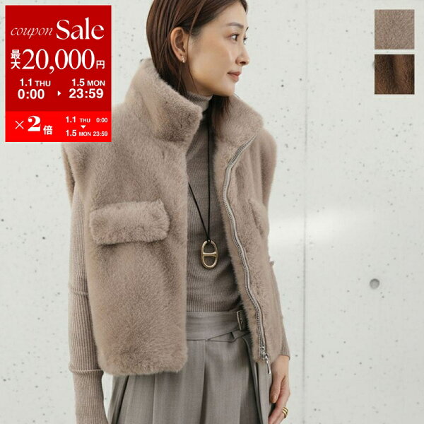 【新春SALE・最大2万円OFFクーポン1/1~5限定】PRIORITY プライオリティ ファーベスト P56000BF レディース ジレ フェイクファー スタンドカラー ショート丈 カラー2色
