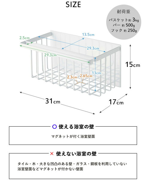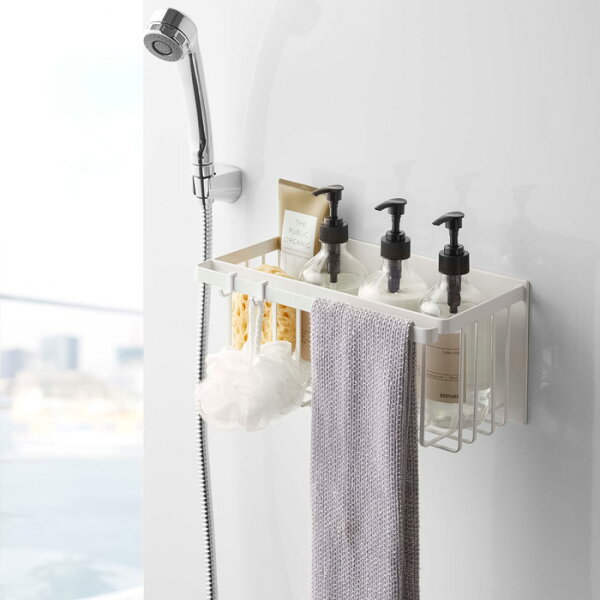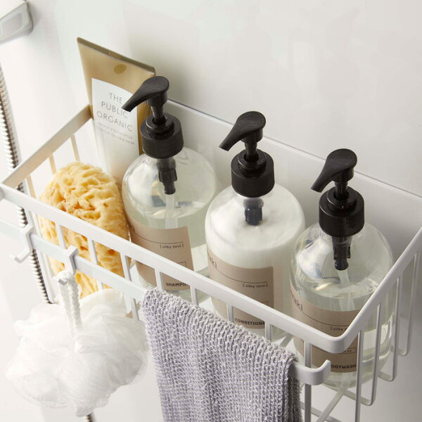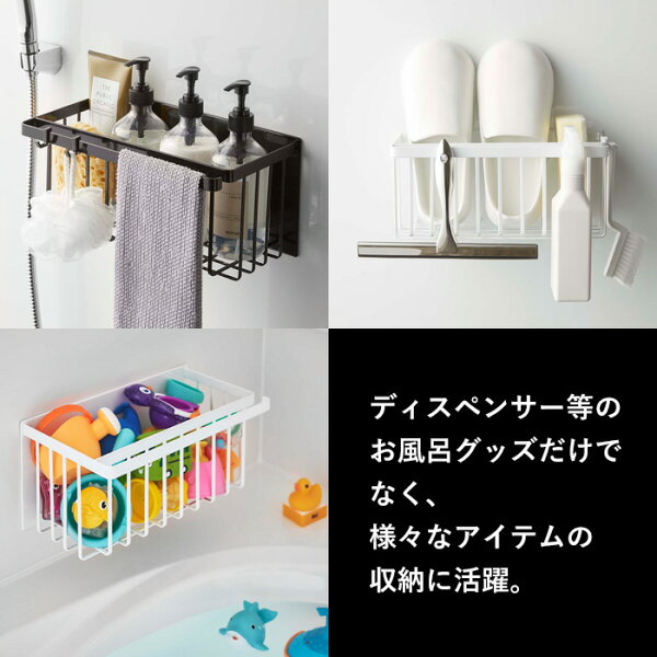 レビュー特典! tower 《 山崎実業 マグネットバスルームバスケット タワー 》 マグネット収納 バスラック ディスペンサー シャンプーボトル 掃除道具 小物 おもちゃバスケット お風呂バスケット 浴室 整理 片付け かご シンプル おしゃれ 公式 白 黒 5542 5543