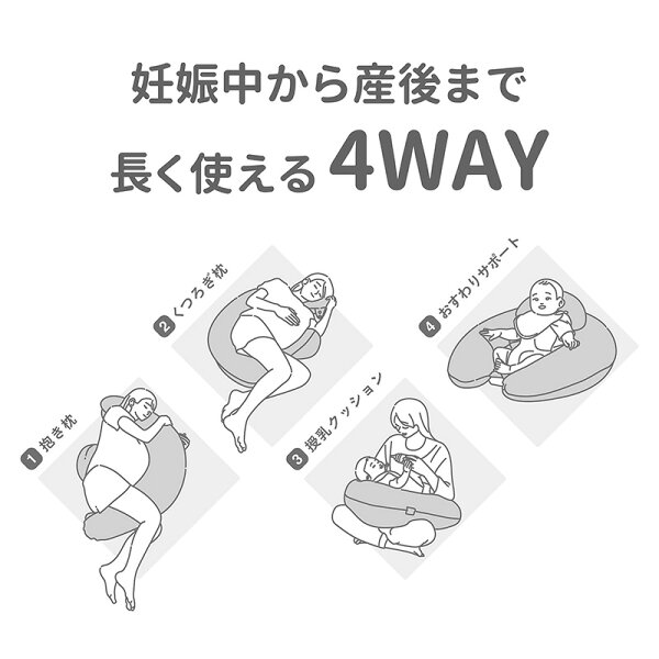 エールベベ ギュット 4WAY イブル ライトグレー BB805 (1個) プレママの眠りをサポートする抱き枕 授乳クッション 妊婦 抱き枕 洗える エールべべ (R80)