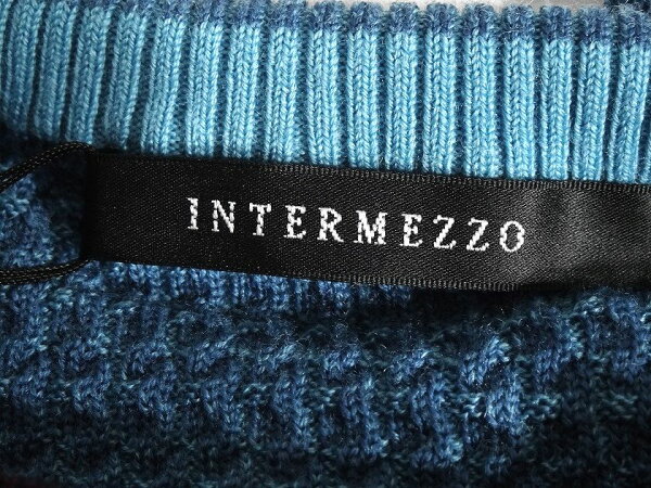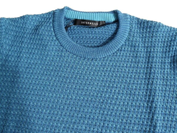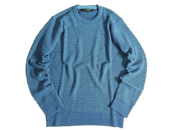 INTERMEZZO インターメッツォ 日本製 ワッフル編み ウールニット ミックスカラー クルーネック 長袖 ニット セーター 2400461265 定2万 ミックスブルー L▲016▼40409m08