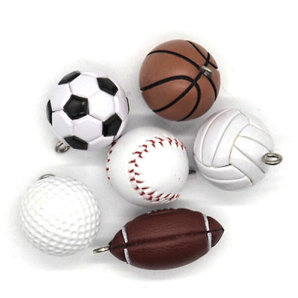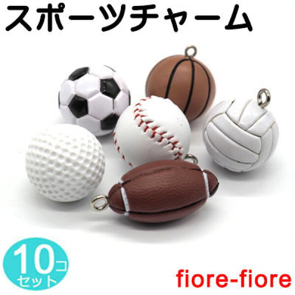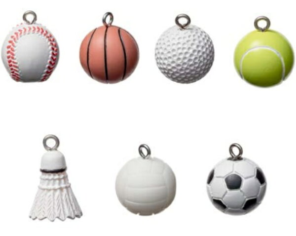 10個セット Sサイズ スポーツチャーム キーホルダーチャーム サッカー、バスケットボール、野球、バレーボール、ゴルフ、テニスボール、バドミントンシャトル、 の各種スポーツのボール型チャーム