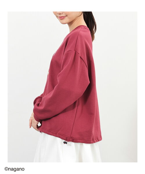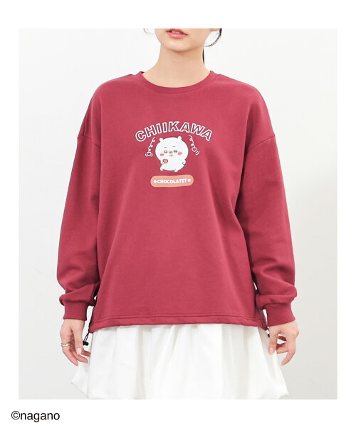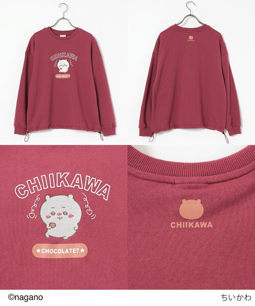 ◆◇期間限定クーポン◇◆トップス トレーナー スウェット 長袖 ちいかわ キャラクター ゆったり ドロスト 綿混 裏毛 刺繍 レディース Honeys ハニーズ ちいかわ/ゆるトレーナー