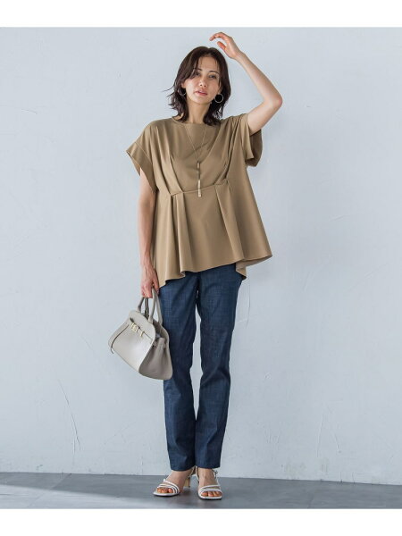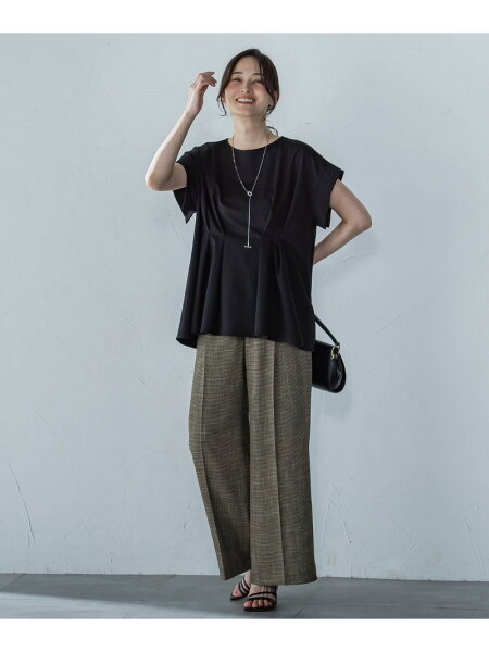 【SALE/30%OFF】ペプラム風タックカットソー≪洗濯機で洗える≫ LAUTREAMONT ロートレアモン トップス カットソー・Tシャツ ブラウン ホワイト ブラック【RBA_E】【送料無料】[Rakuten Fashion]