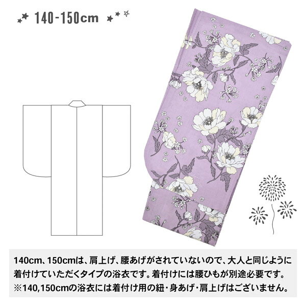 ※ 140,150cmの浴衣には着付け用の紐・身あげ・肩上げはございません。