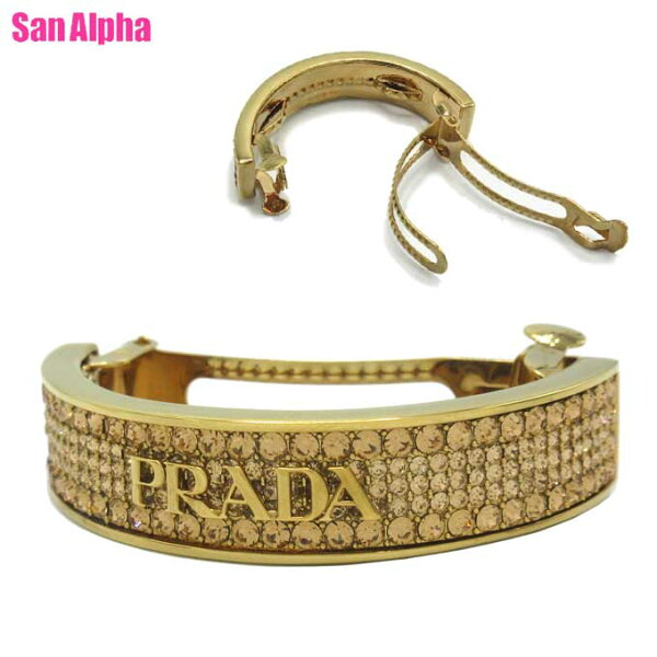 【10%OFF 1/6 AM9:59迄】プラダ ヘアバレッタ PRADA FERMAGLI メタルロゴ クリスタル バレッタ 1IF099 CRYSTAL JEWELS / ORO+LIGHT C.TOP (ゴールド系) アウトレット レディース 送料無料
