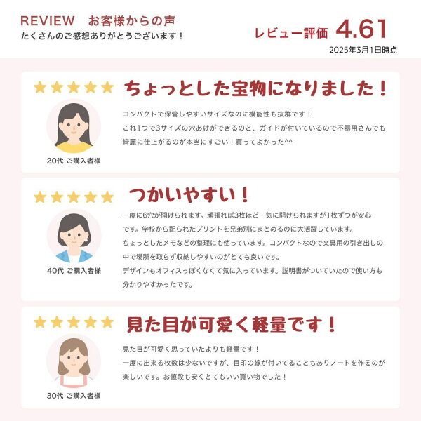 【週間ランキング17冠】 ルーズリング付属 ルーズリーフ パンチ 穴あきパンチ 穴あけパンチ ルーズリーフパンチ 6穴 A4/B5/A5 対応 30穴 26穴 20穴 オリジナルノート オリジナル手帳 プリント ノート 写真 綴じ 日本語説明書 DIY 手帳作り