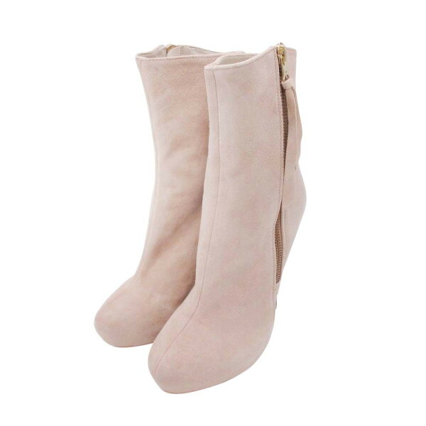 【中古】良品 DURAS デュラス スエードレザー ショートブーツ 厚底 インストーム 12cmヒール 本革 シューズ 靴 S ライトベージュ レディース Luxs ブランド古着のリュクス