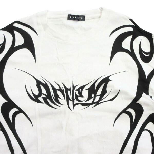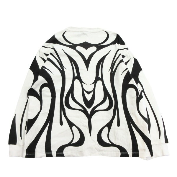 【中古】良品 REFLEM レフレム トライバル プリント ラングスリーブ Tシャツ カットソー クルーネック オーバーサイズ 長袖 ホワイト×ブラック レディース Luxs ブランド古着のリュクス