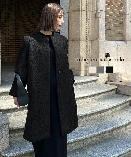 ≪ 1/1再値下げ&大量追加!! 最大80%OFF!! WINTER SALE ≫[ miku さんコラボ ] 2way ノーカラーコート レディース コート ロングコート アウター ジレ ベスト ノーカラー 襟なし ブークレー ボア ブラック 黒 大人 2WAY 袖取り外しOK 高見え 上品 きれいめ 30代 40代 [K1248]