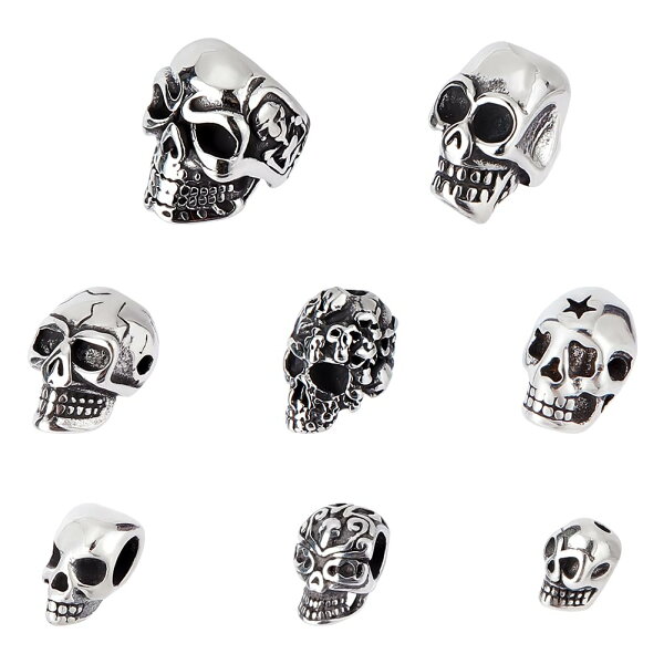 【送料無料】UNICRAFTALE 約8個 8種 混合形状 スカル ビーズ スカルチャーム 304ステンレス ビーズ ドクロ 髑髏頭ビーズ イースターテーマ アンティークシルバー メタルビーズ 金属ビーズ スペーサービーズ ジュエリー作り ブレスレット用 ギフト アクセサリーパーツ 手芸 DI