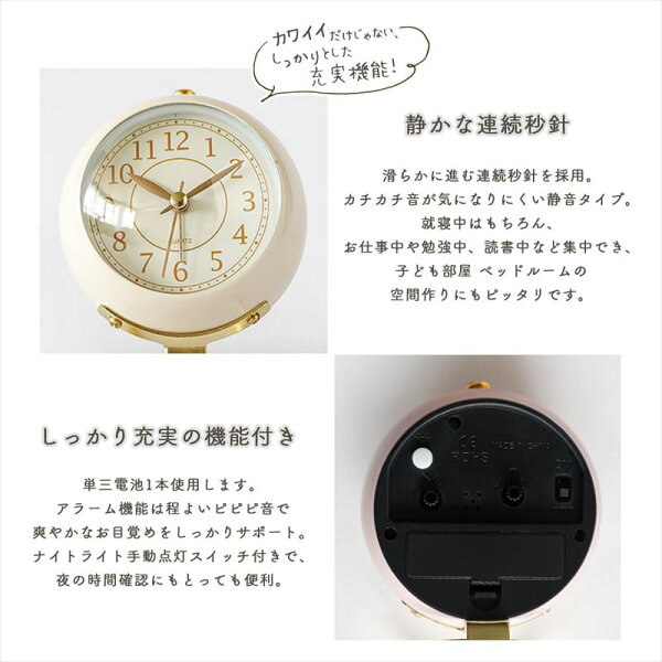 小さめで、丸いコロっとしたデザインがお洒落でキュートな置き型目覚まし時計です!