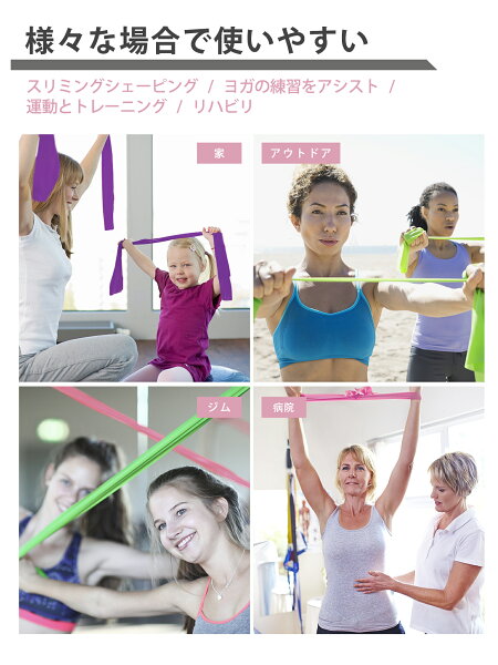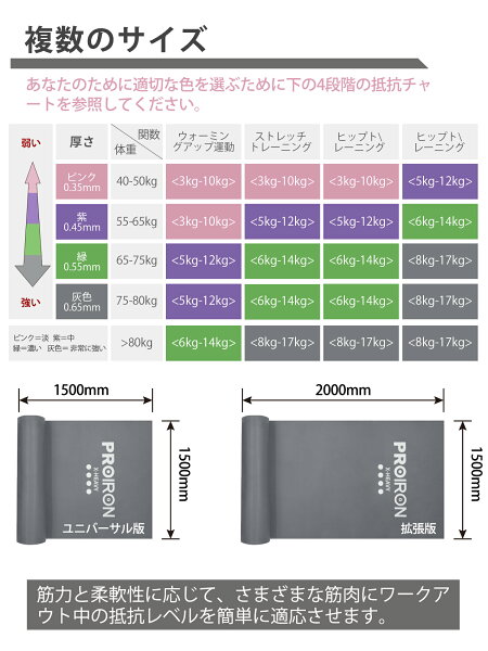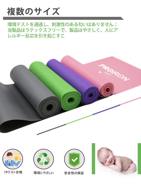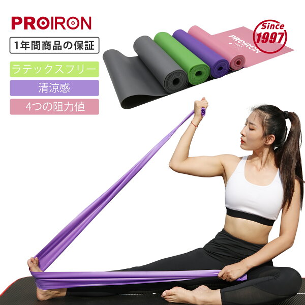 PROIRON ストレッチバンド フィットネスバンド エクササイズ チューブ ラテックスフリー 1.5m 2m 滑り止め TPE素材 無刺激 4種の強度 ヨガ ピラティス 筋力トレーニングのやリハビリに最適