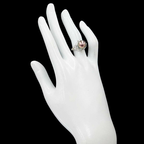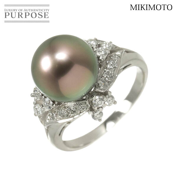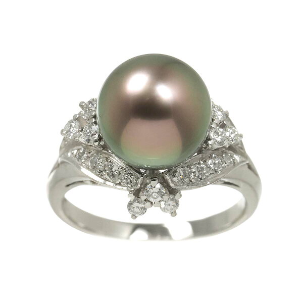 【新品同様】 ミキモト MIKIMOTO 11.5号 リング 黒蝶真珠 10.1mm ダイヤ Pt プラチナ パール 指輪 Black Pearl Ring【中古】