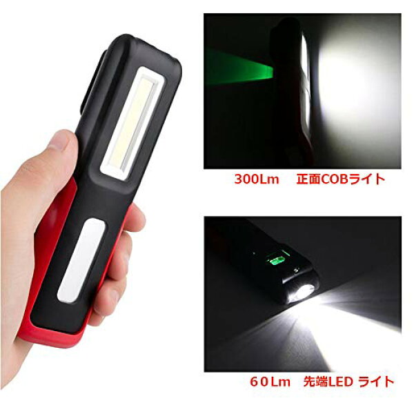 COOLEAD COB 作業灯 LEDワークライト USB充電式 懐中電灯 高輝度 マグネットスタンド&フック付き 軽量 小型 日常応急照明/自動車整備/夜間作業 (レッド)