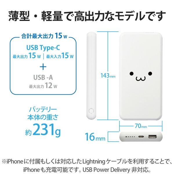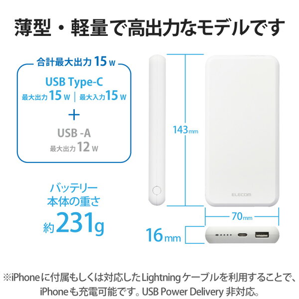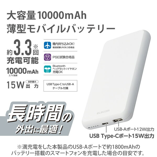 エレコム ELECOM モバイルバッテリー 10000mAh DE-C38-10000BK/WH/WF 大容量 15W / 3A 15W / 3A 入出力( Type-C ×1 ) 出力( USB-A ×1 ) おまかせ充電対応 充電器 ブラック ホワイト
