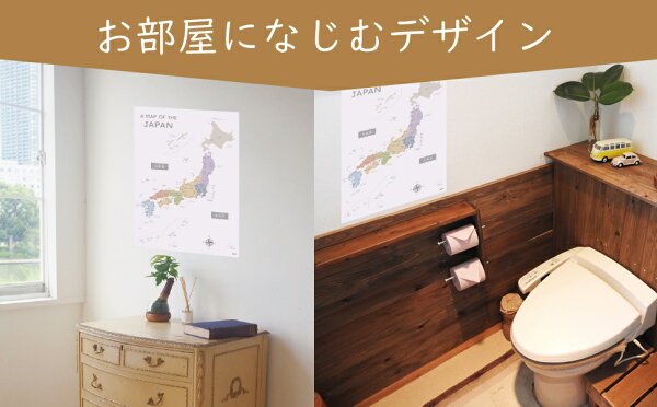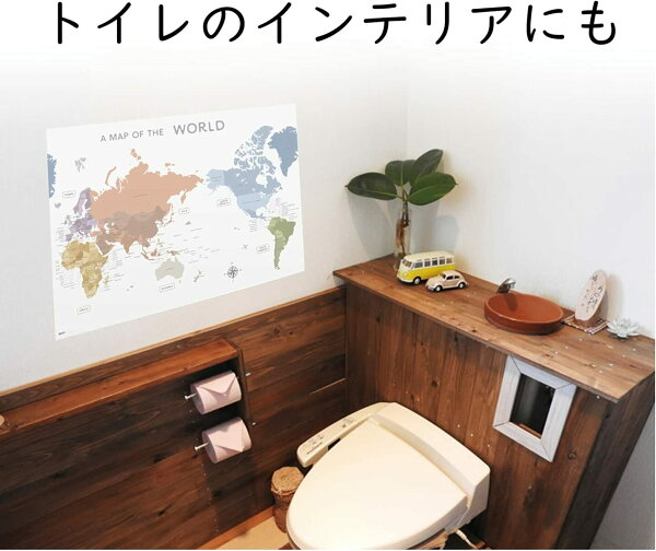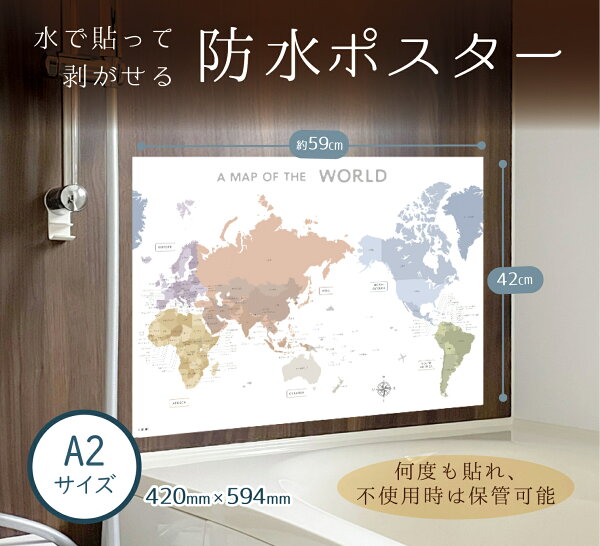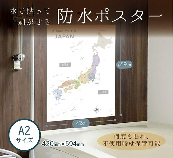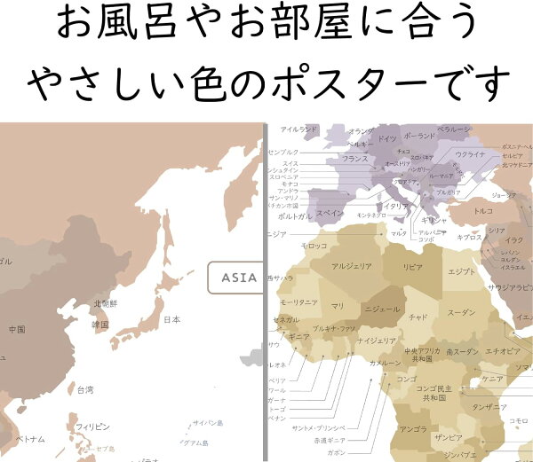 お風呂ポスター【日本・世界地図 2枚セット】A2(約60×42cm) くすみカラー 日本製 防水ユポ 貼ってはがせる 耐候インク ノートライフ 知育 学習 インテリア ギフト箱入り 都道府県