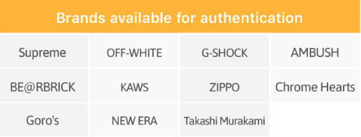 Items eligible for authentication: TCG (Trading Card Game), shoes, clothing, jewelry, Watch, and luxury brand goods.