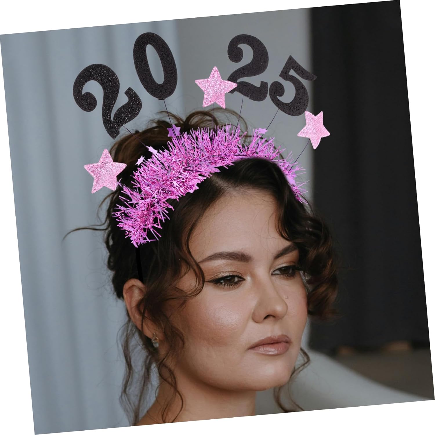 - なデザイン: 2025 番号と星のガーランド ヘッドバンドは な外観を提供し、あらゆるイベントの新年ヘアフープのスターになります。