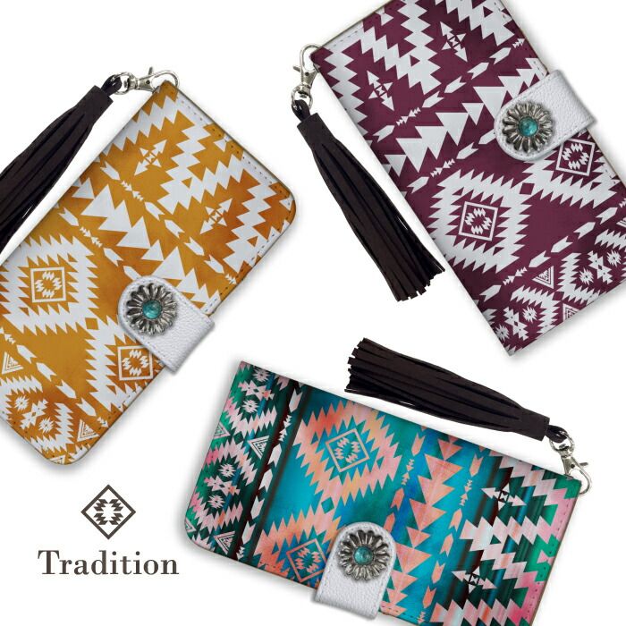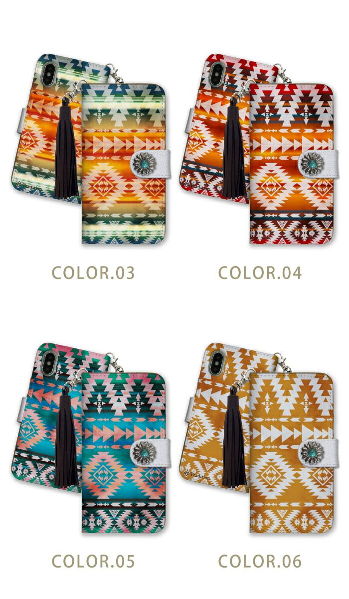 Xperia 1 VII SO-51F SOG15 A501SO ケース 手帳型 エクスペリア 1 7 スマホケース フリンジ ストラップ付 コンチョ おしゃれ 可愛い ネイティブ オルテガ柄 カジュアル ブラック グラデーション カラー06