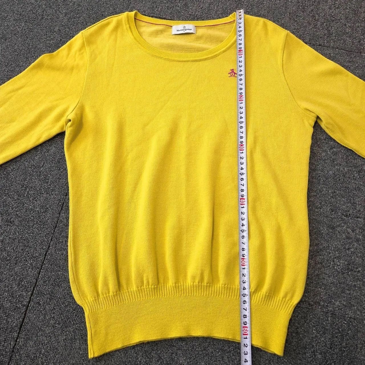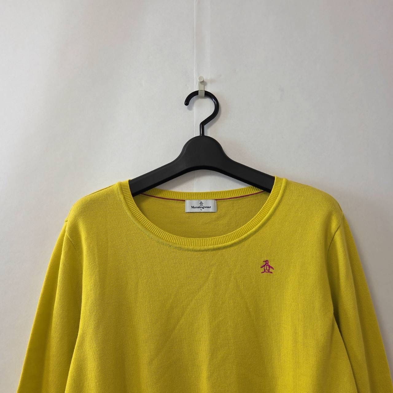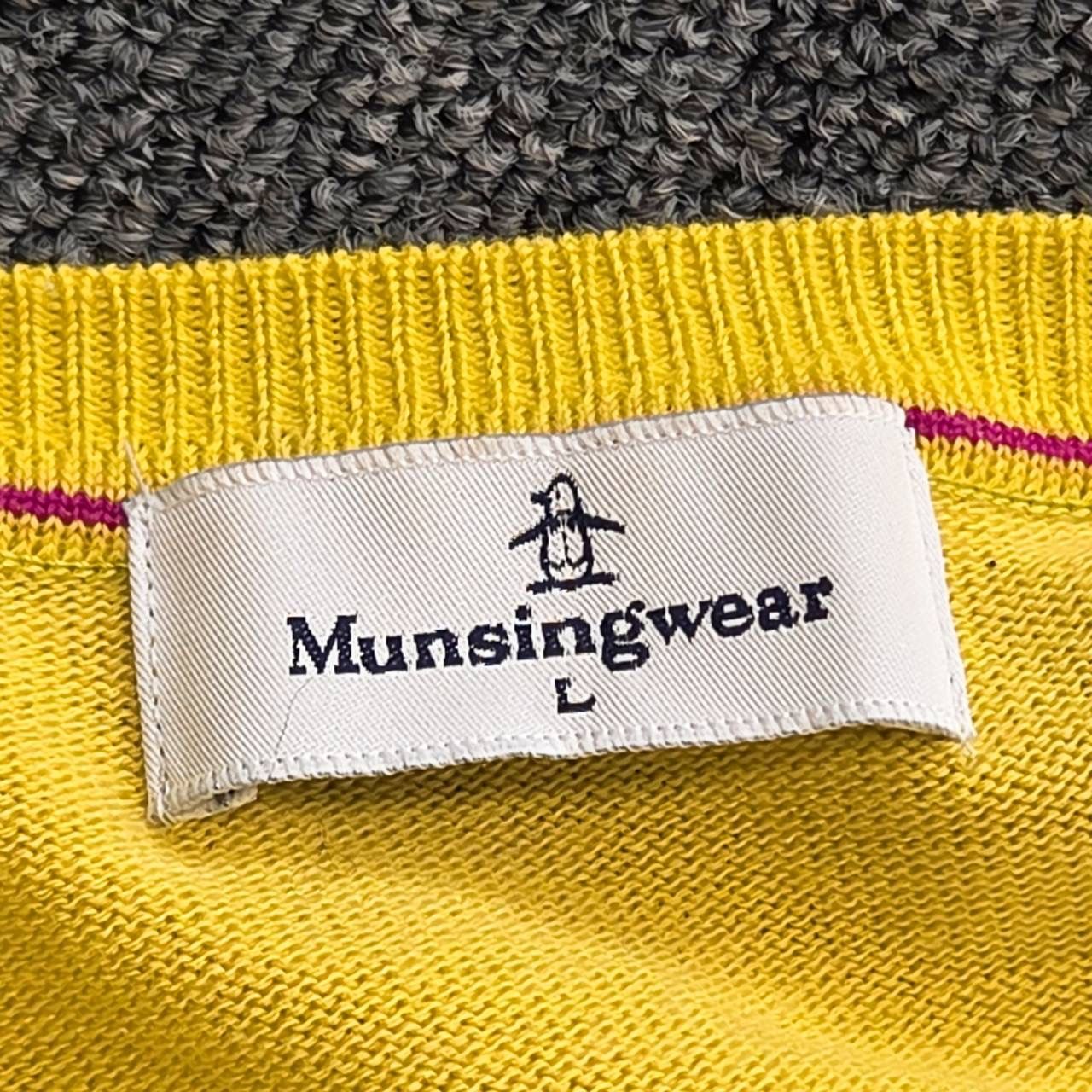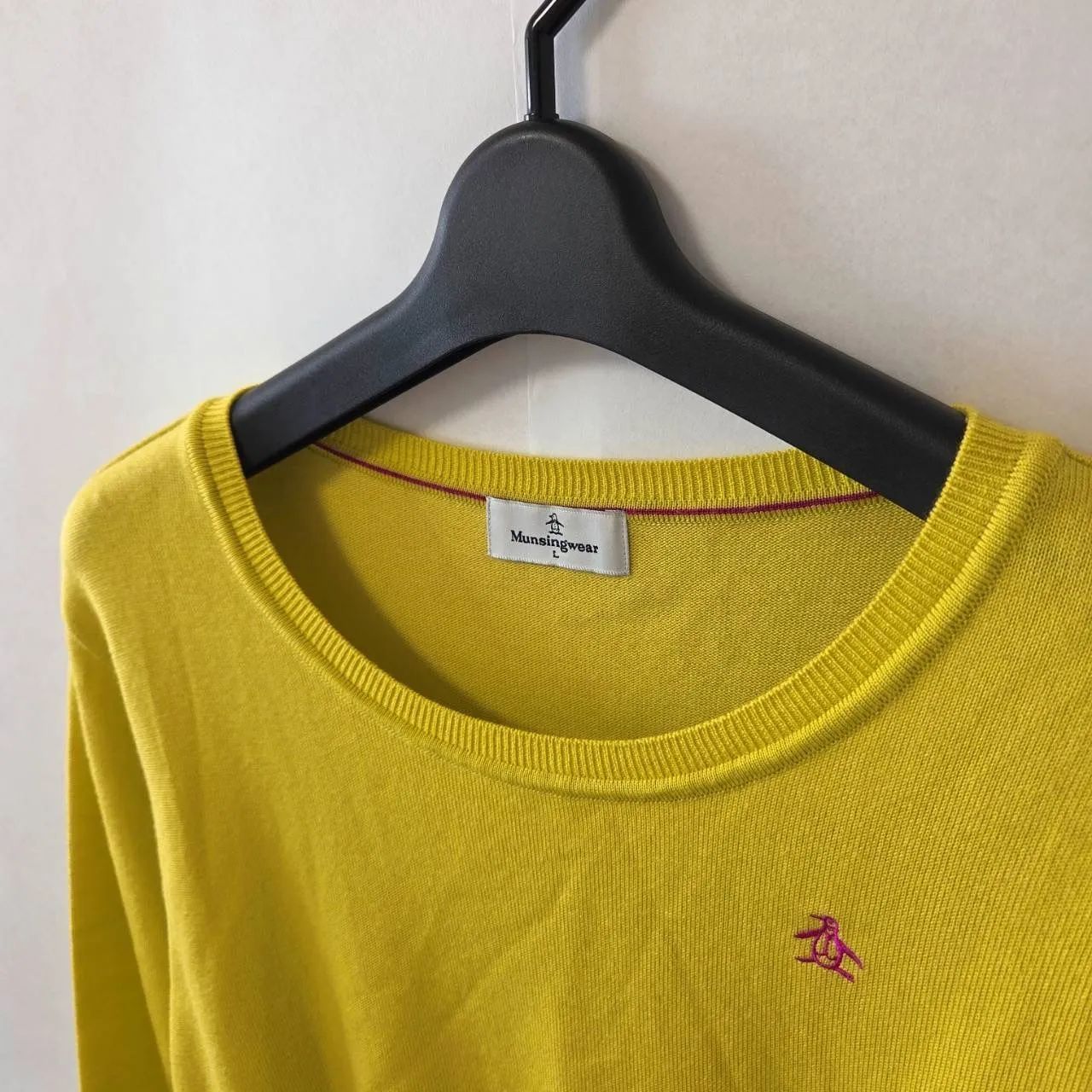 Munsingwear マンシングウェア 長袖ニット セーター Lサイズ イエロー 黄色 ワンポイント 刺繍 ウール100% ゴルフウェア