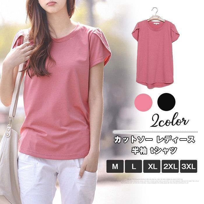 カットソー レディース 半袖 tシャツ トップス チュニック 半袖トップス 半袖カットソー シンプル ピンク ブラック 黒 大人 無地 クルーネ