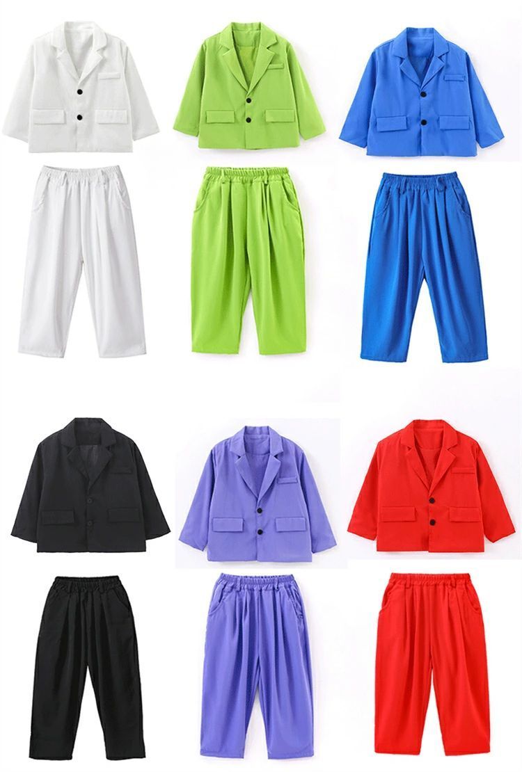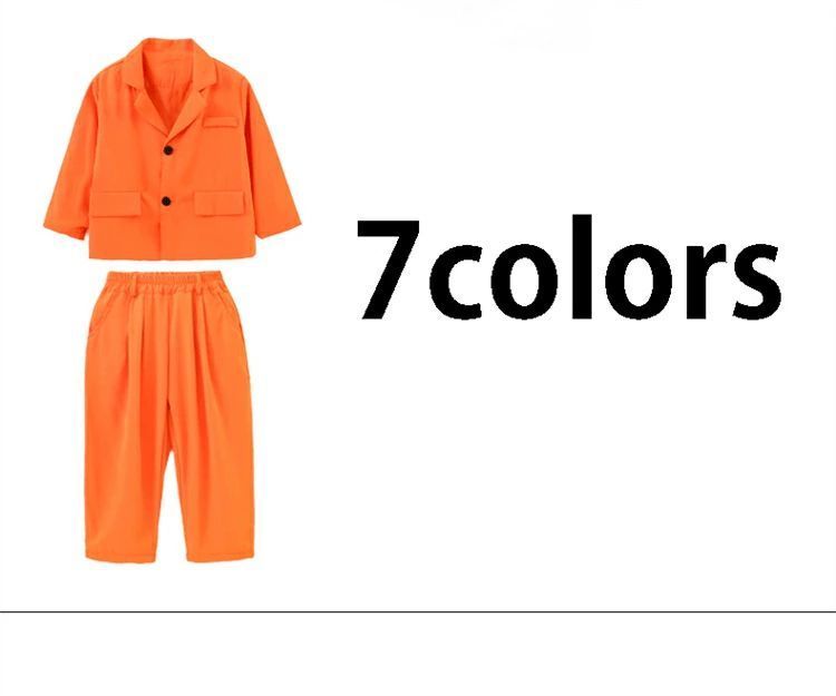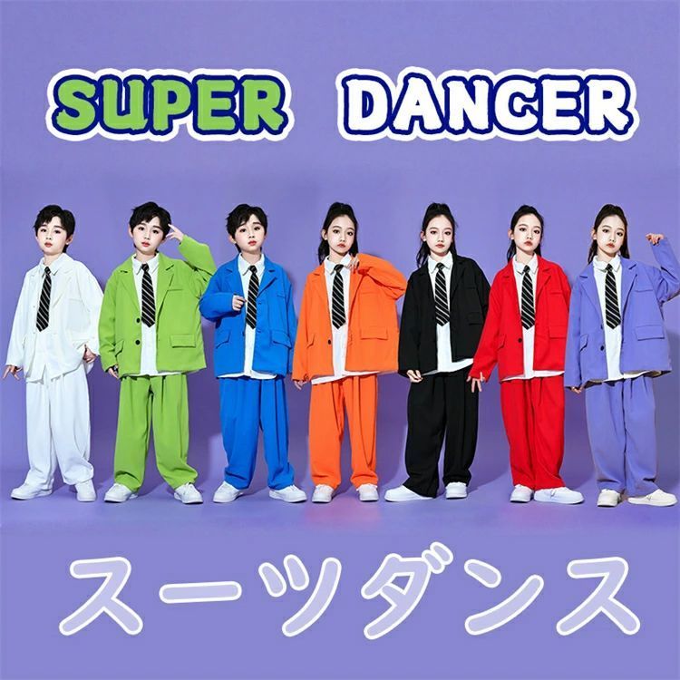 【黒スーツ二点セット】7colors スーツセット キッズ ダンス 衣装 ジャケット ジャズ jzaa ダンス ヒップホップ セットアップ 長袖 ズボン 長ズボン ネクタイ 白シ