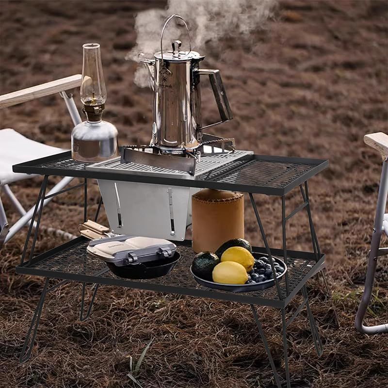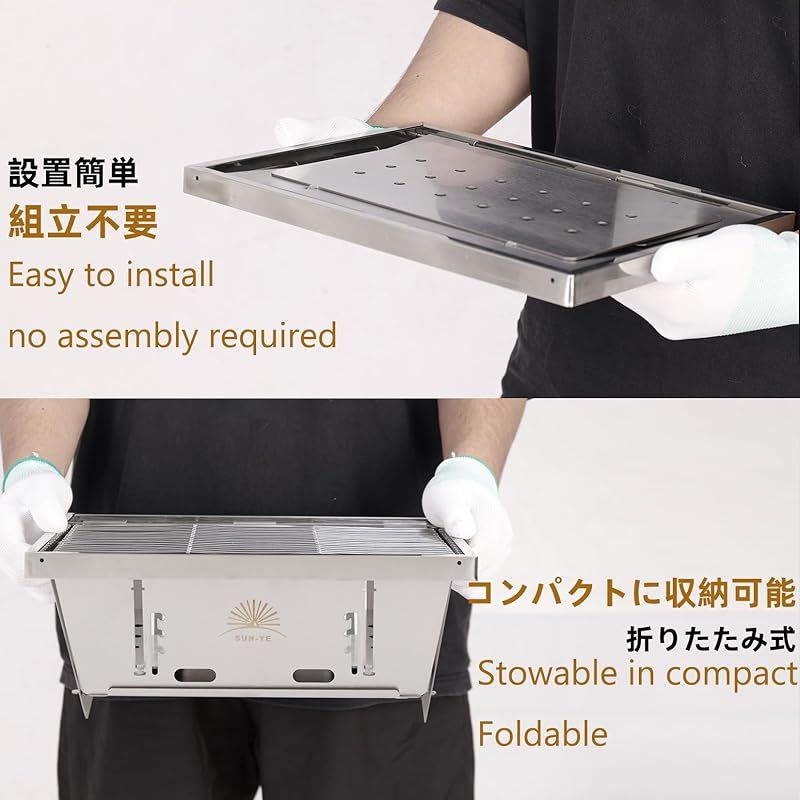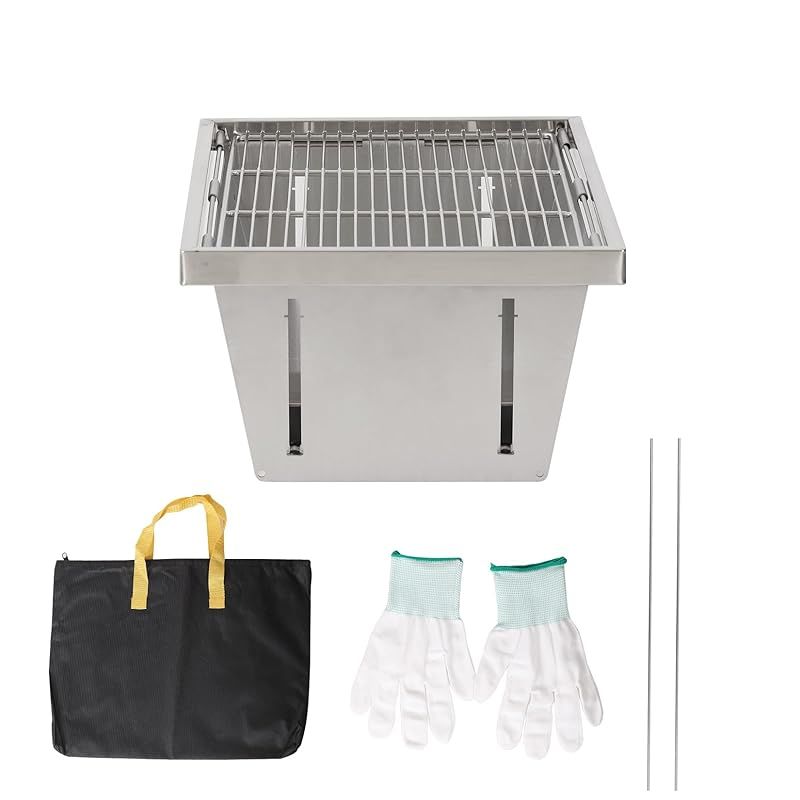SUN-YE 折り畳みコンロ バーベキュー コンロ BBQグリル 焚き火台 igtテーブル用 調整可能な炉内燃焼カーボンプレートの高さ ステンレス製 瞬時に展開・収納 ステンレス鋼 1枚 ステンレス棒 2本 収納袋付き 0
