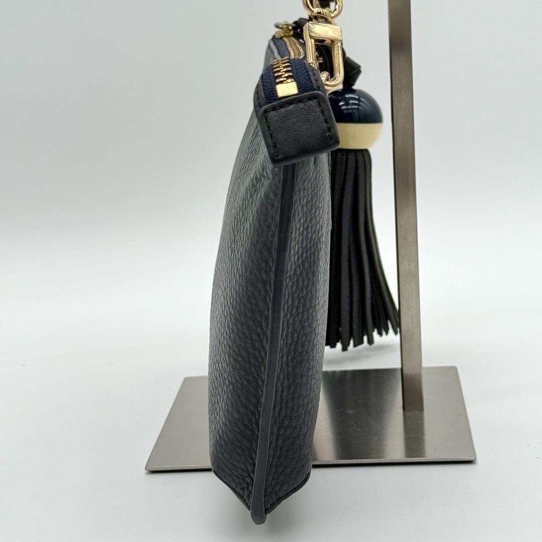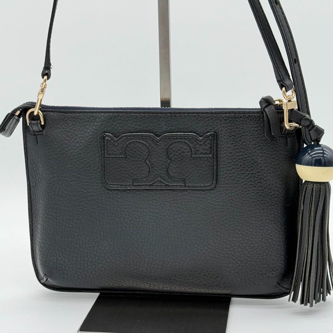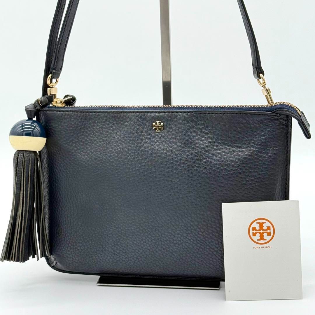 【美品】ToryBurch タッセル ポシェット ショルダーバッグ ネイビー