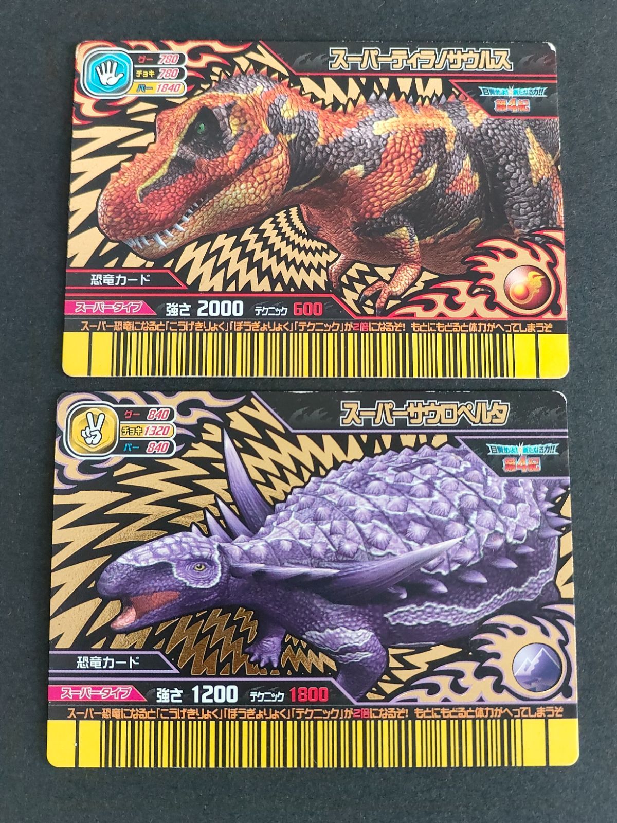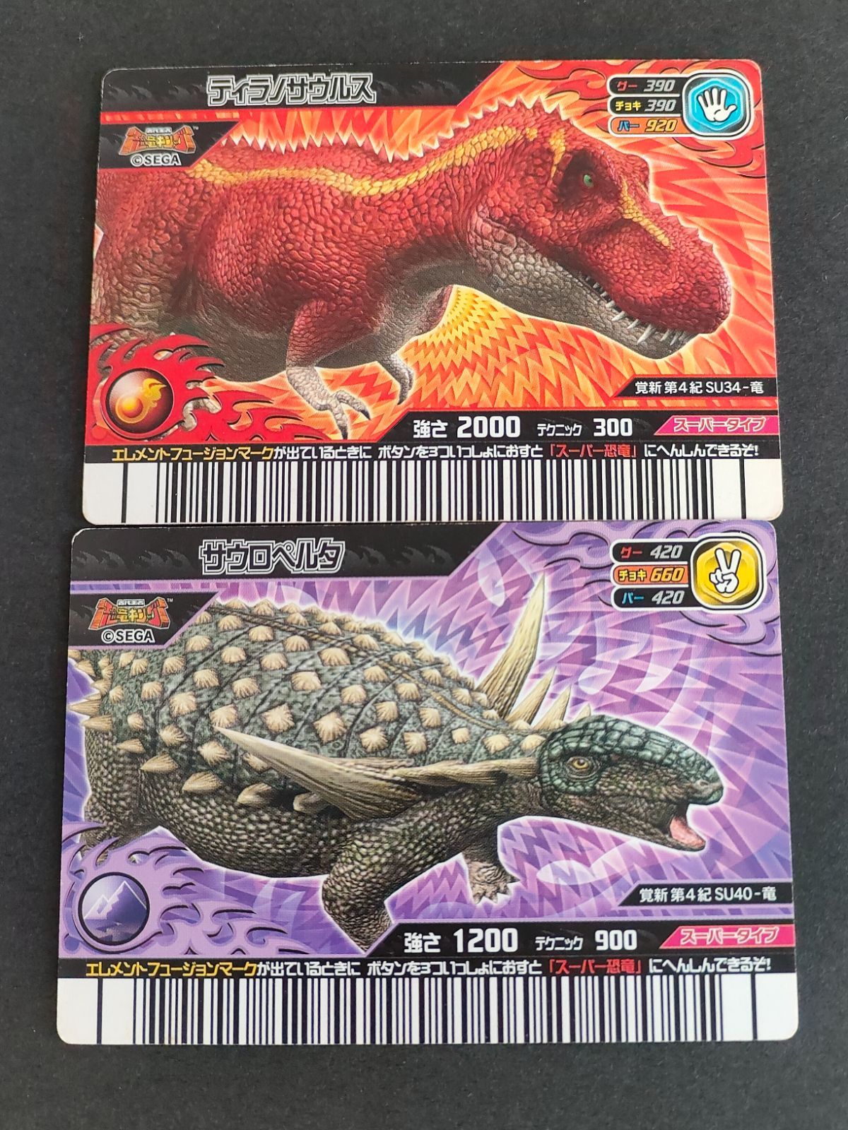 aca404 恐竜キング カード まとめ スーパーティラノサウルス スーパーサウロペルタ