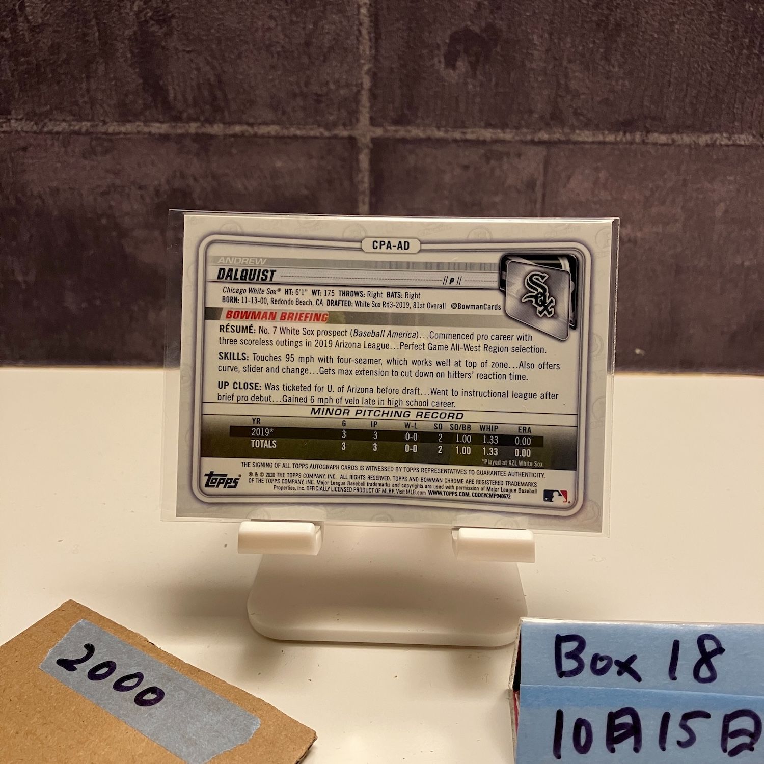 2020 Topps 1st Bowman Chrome Andrew Dalquist 直筆サインカード Chicago White Sox カード