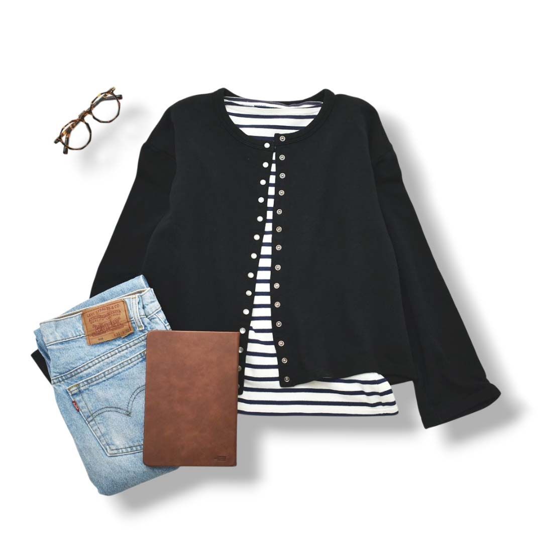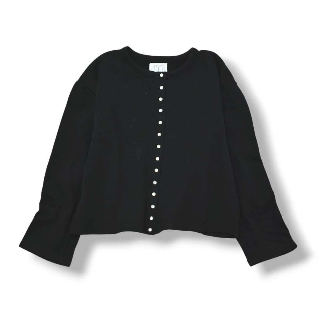 日本製 アニエスベー agnes b スウェット カーディガン プレッション トレーナー パール スナップボタン 裏起毛 3 ブラック フレンチ カジュアル デザイナー モード レディース ♪
