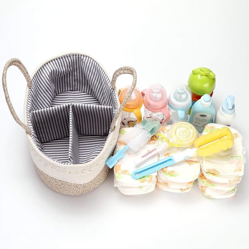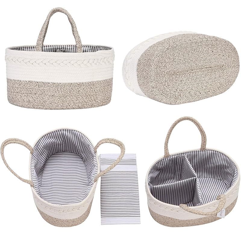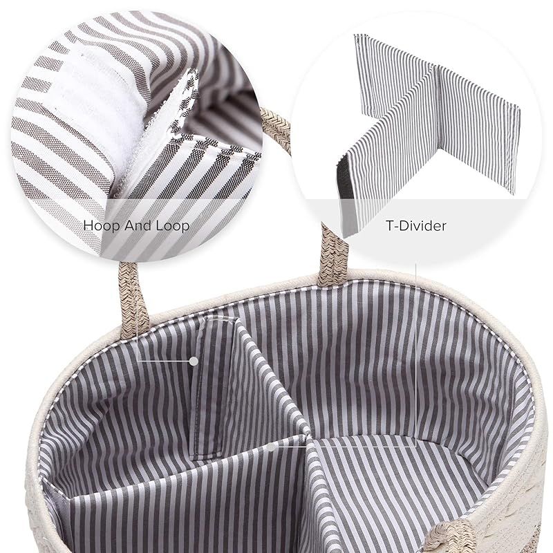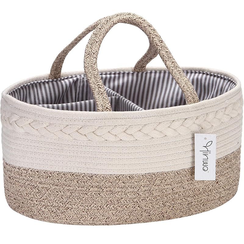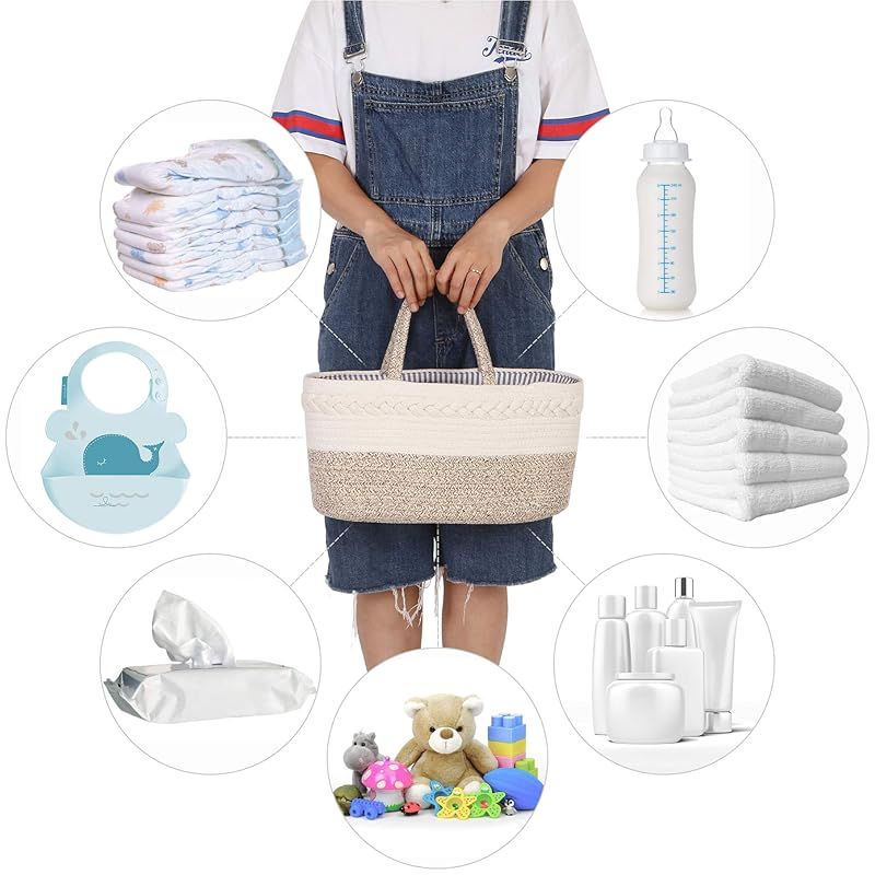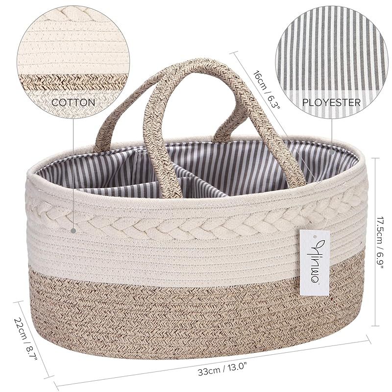 Hinwo コットンロープ おむつストッカー おむつバッグ おむつポーチ ベビー用品 収納ボクス オムツ収納ケース ベビー収納パック おもちゃ 小物入れ 出産祝い ギフト 持ち運び便利 (33*22*17.5cm) ナチュラル 1