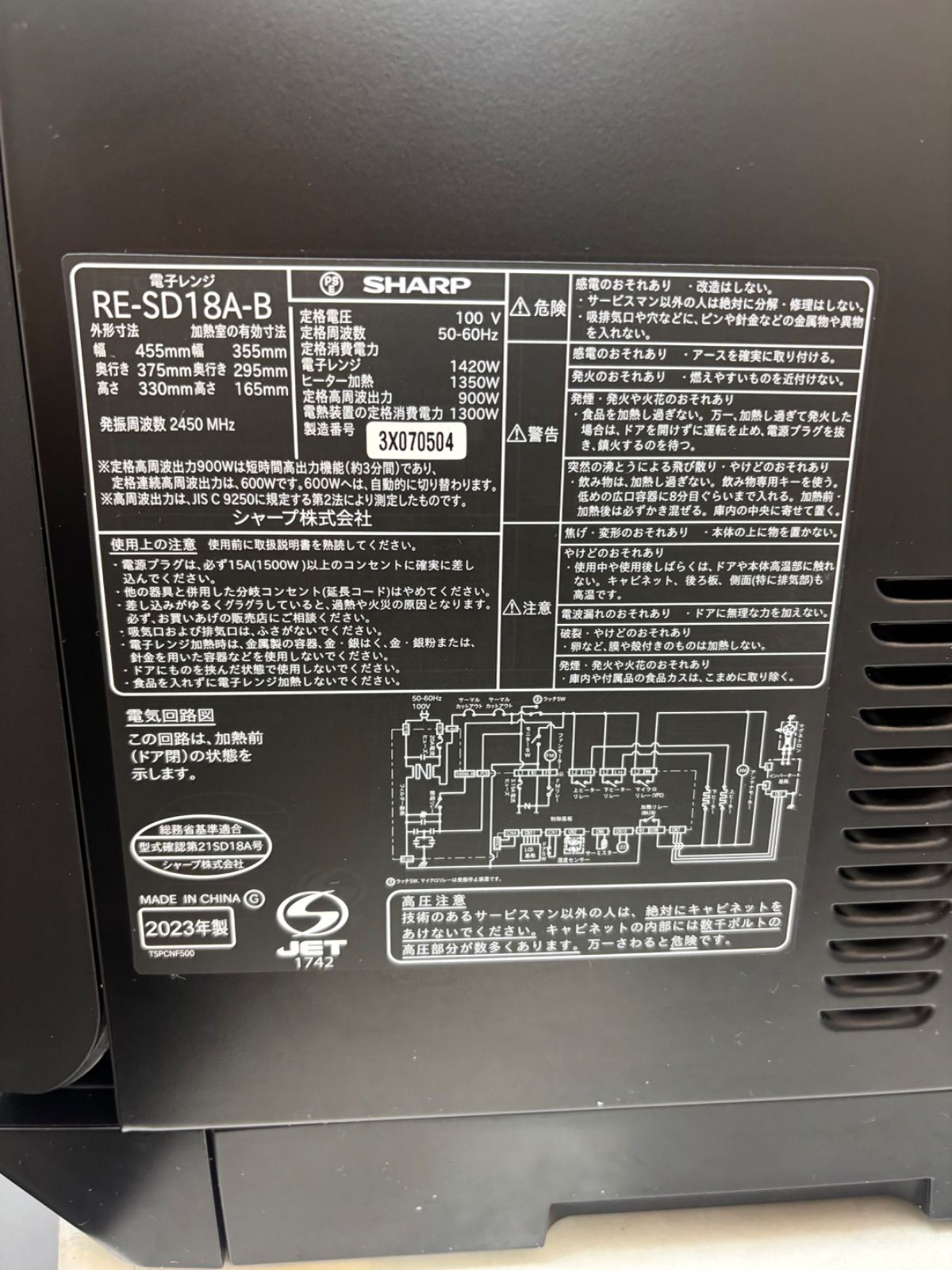 ◆SHARP オーブンレンジ フラット スタイリッシュ ブラック RE-SD18A-B