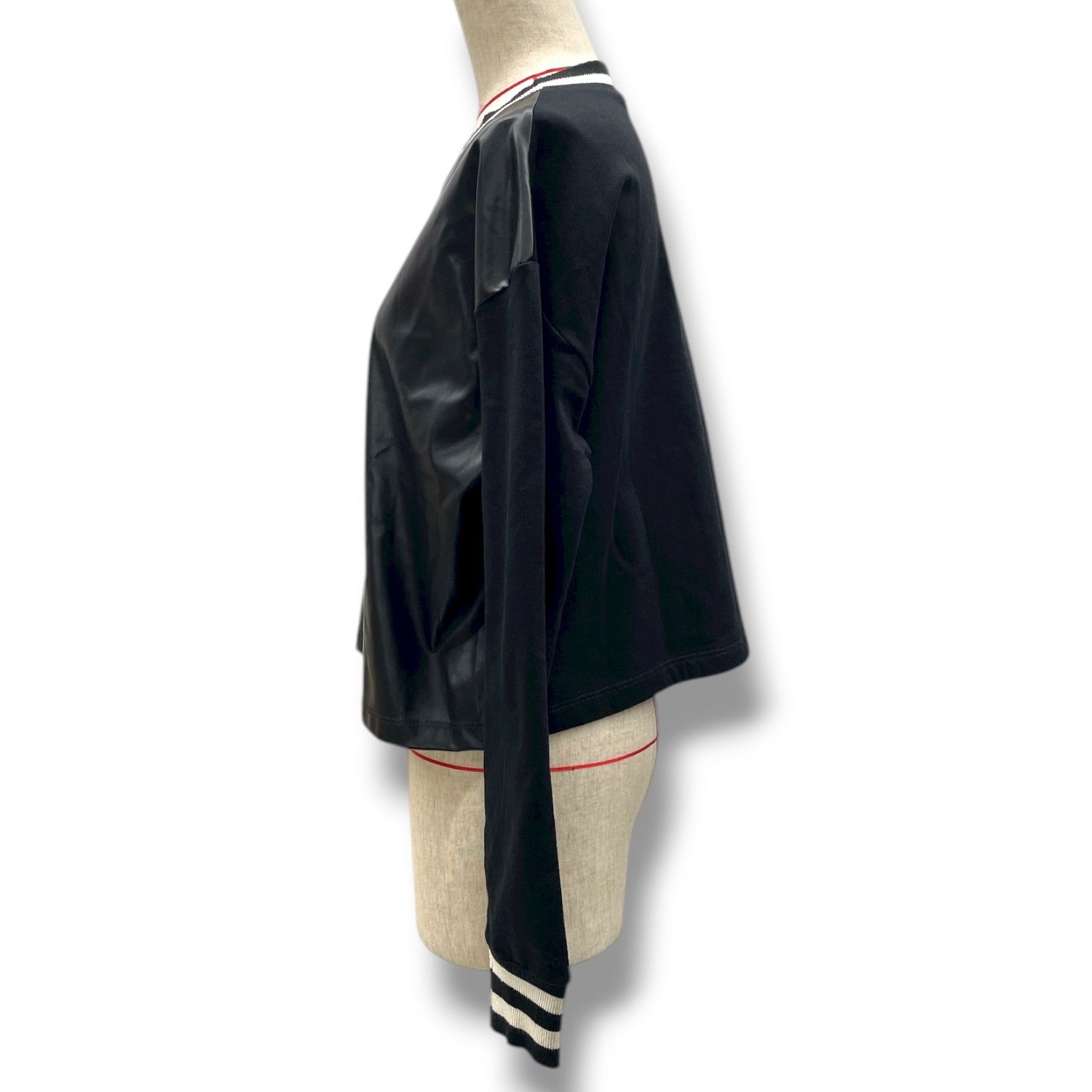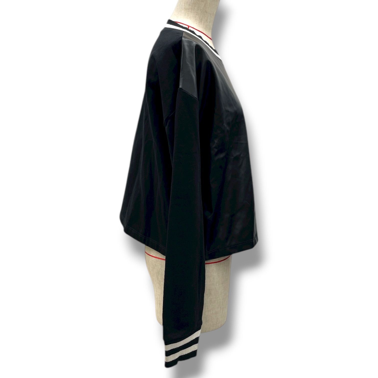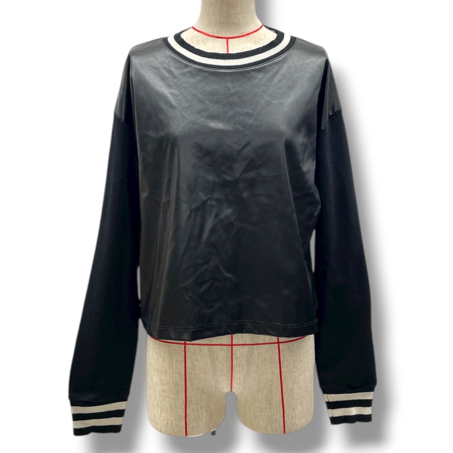 RINASCIMENTO リナシメント 異素材切替トップス カットソー レザー スウェット 裏起毛 スタジャン風 CFC0104182 イタリア製 黒 ブラック Mサイズ レディース 秋 ゴーゴー古着マルイ北千住店 2 No.1135
